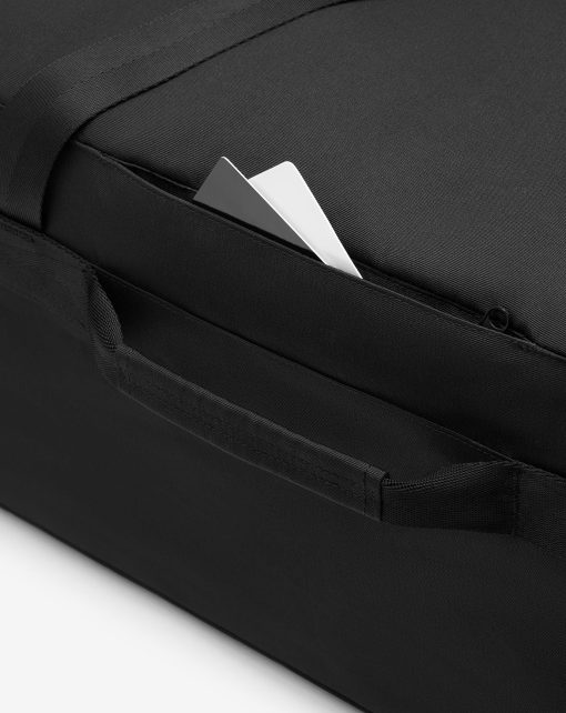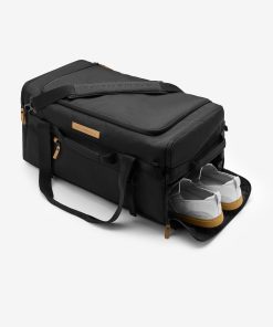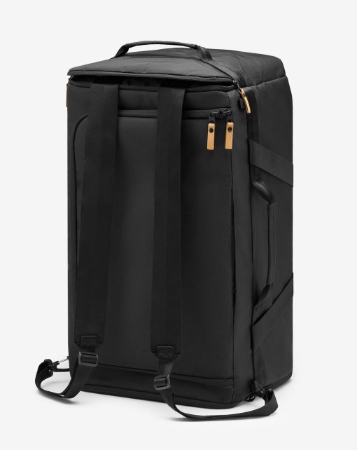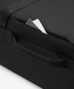 - Side zipper pocket stows backpack straps so you can carry as a backpack or duffel.