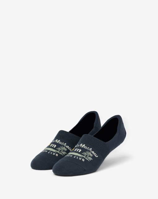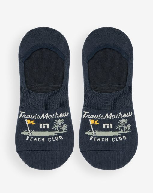 Expertly crafted with our comfort fabric blend, the PRIVATE BAR invisible no-show socks supply an ultra-cushioned sole, no-slip cuff, and a club-inspired TravisMathew crest across the foot. All that in a deep navy shade? Sign us up.