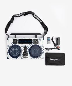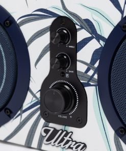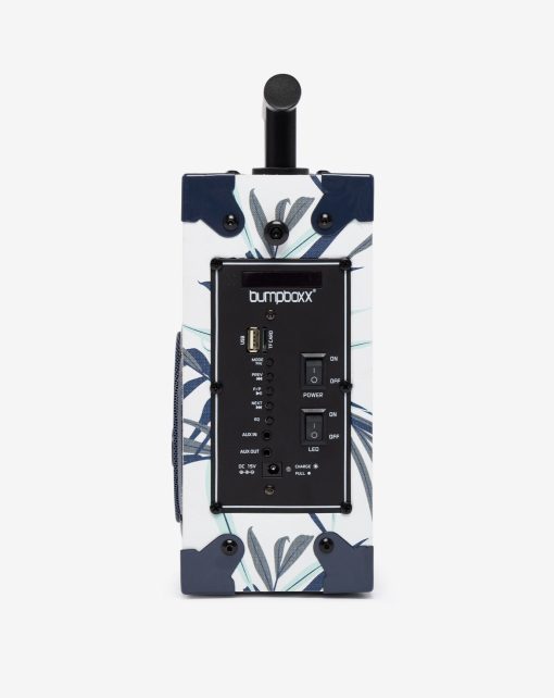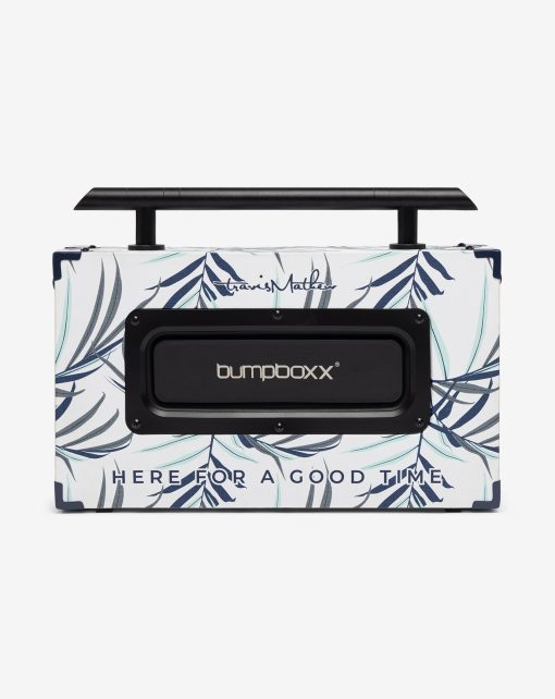 TravisMathew and Bumpboxx have joined forces to bring you the PRIVATE LOUNGE Bluetooth boombox. Using the Ultra model from Bumpboxx, we added our own spin with a retro tropical print and signature artwork on the speakers. This unit has large woofers and 150 watts of TRUE power. This is perfect for those seeking deeper bass to go along with crystal clear music. Even with the music loud, the Ultra can last up to 12 hours with the rechargeable lithium battery. There are multiple options to choose how to play your music; use the Bluetooth which can connect from long distances, use the 3.5 mm aux input, or play music from the USB Drive.