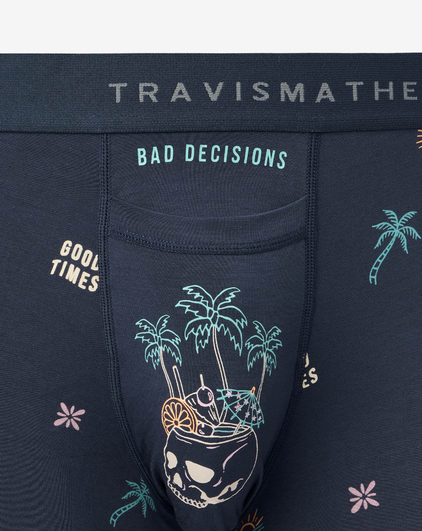 The RUM RIGGER is considered TravisMathew’s “Cloud Boxer.” Incredibly soft fabric and no-chafe construction deliver uninhibited comfort, while a tropical skull drink printed on the pouch & series of other fun graphics serve up the perfect amount of personality.
