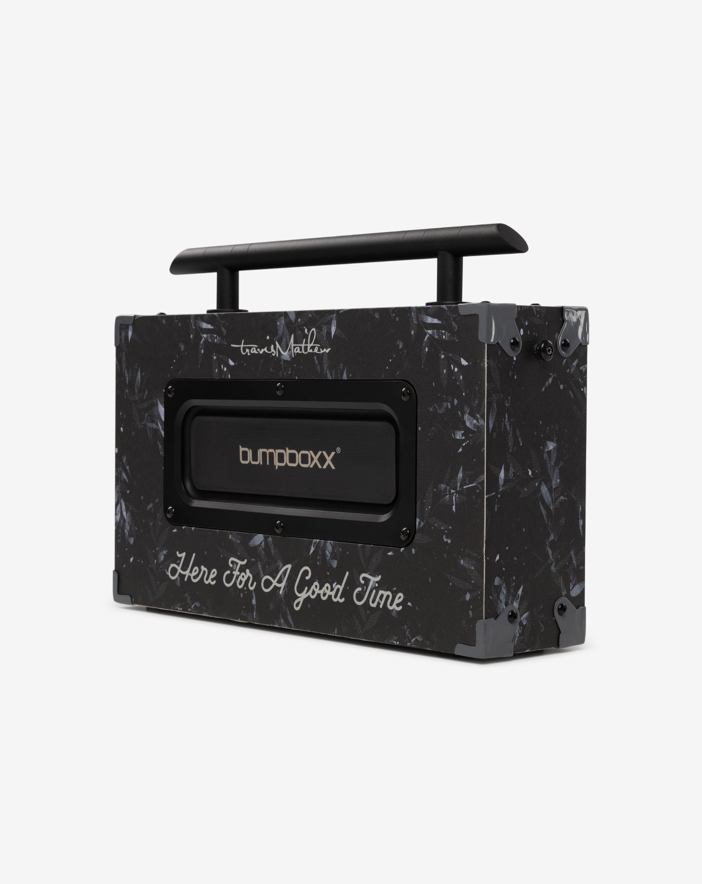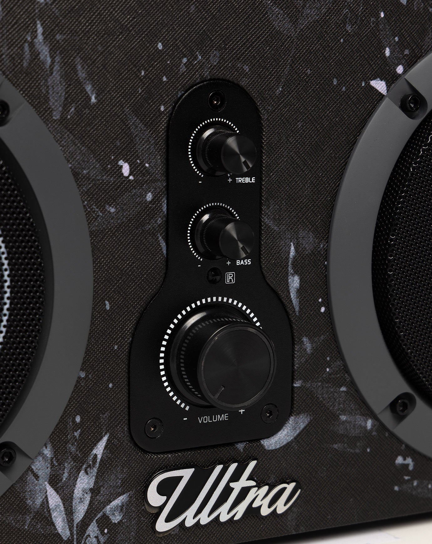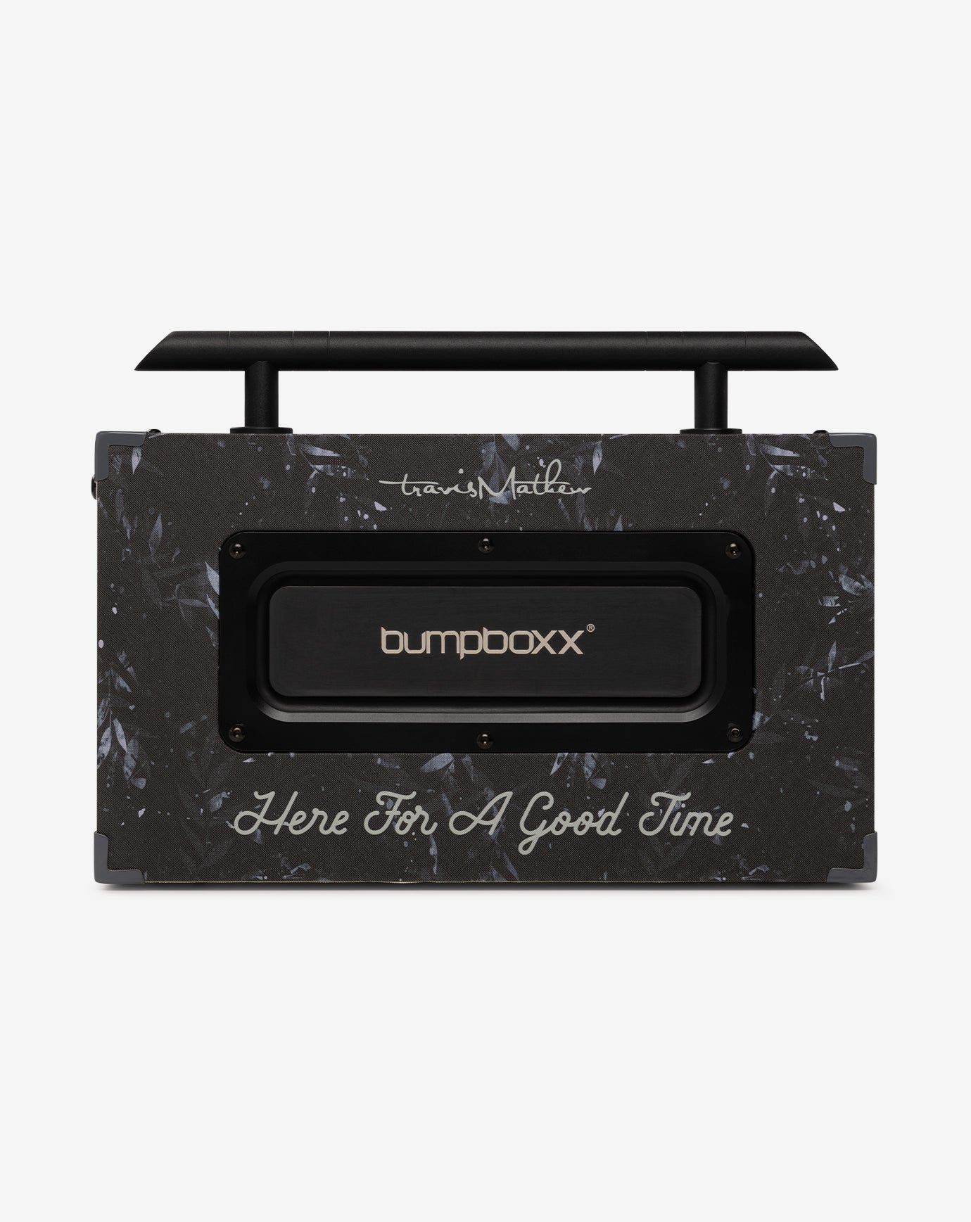 TravisMathew and Bumpboxx have joined forces to bring you the SUCH A RUKUS Bluetooth boombox. Using the Ultra model from Bumpboxx, we added our own spin with a distressed palm pattern and signature artwork on the speakers. This unit has large woofers and 150 watts of TRUE power. This is perfect for those seeking deeper bass to go along with crystal clear music. Even with the music loud, the Ultra can last up to 12 hours with the rechargeable lithium battery. There are multiple options to choose how to play your music; use the Bluetooth which can connect from long distances, use the 3.5 mm aux input, or play music from the USB Drive.