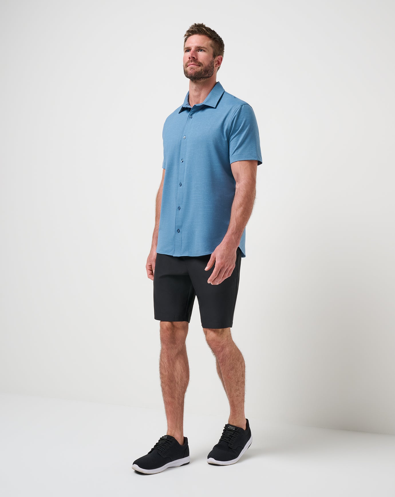 - TravisMathew block logo above back right pocket