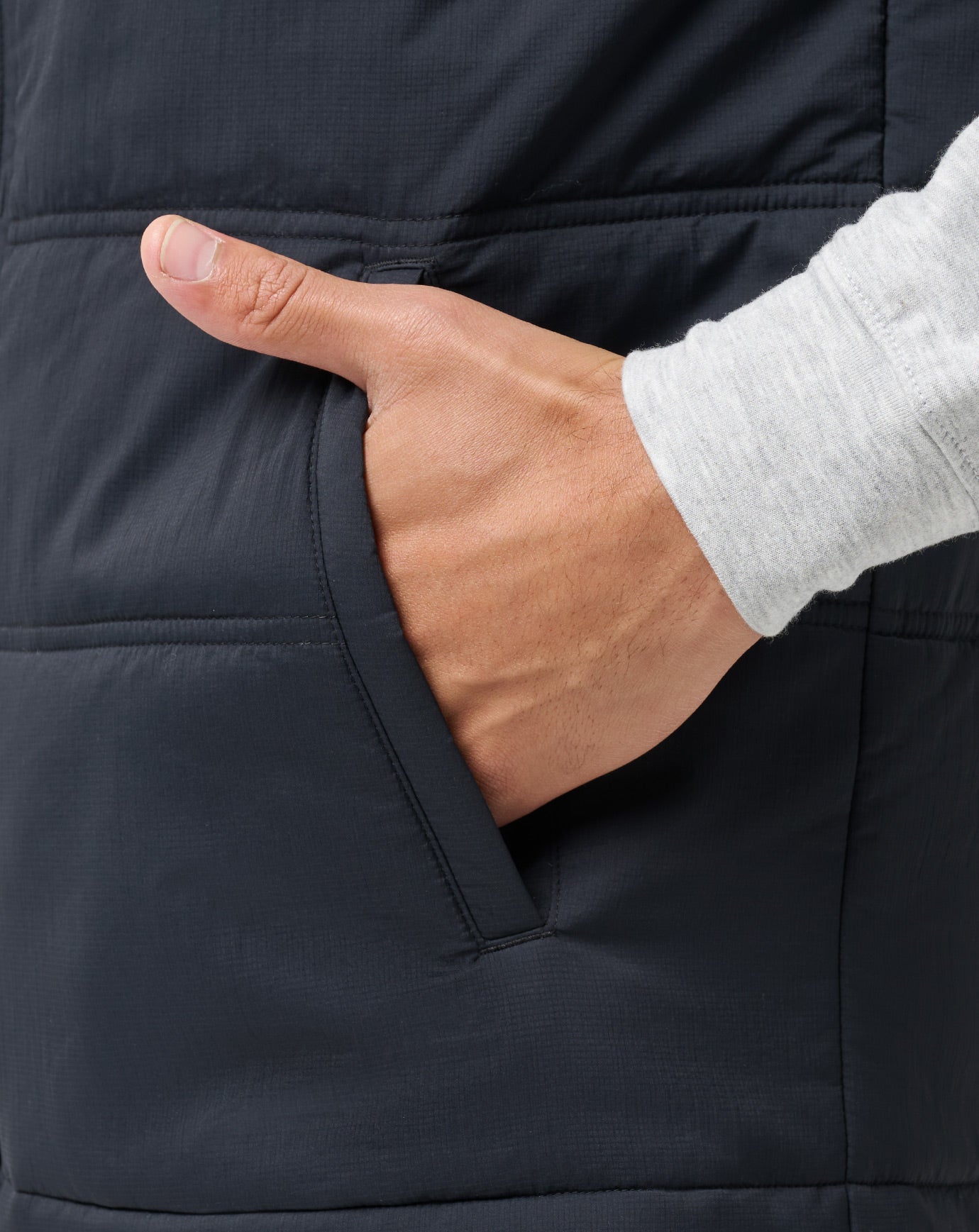 The PALISADES PUFFER VEST does it all: style, warmth, performance. In fact, this men’s full-zip vest features a durable micro-ripstop outer shell with a quilted puffer design that traps heat for optimum warmth. Its lightweight and flexible construction, enhanced with 4-way stretch, offers unmatched mobility and comfort in any setting. Whether you’re hitting the city streets or exploring the great outdoors, the Palisades is your go-to for stylish, insulated warmth.