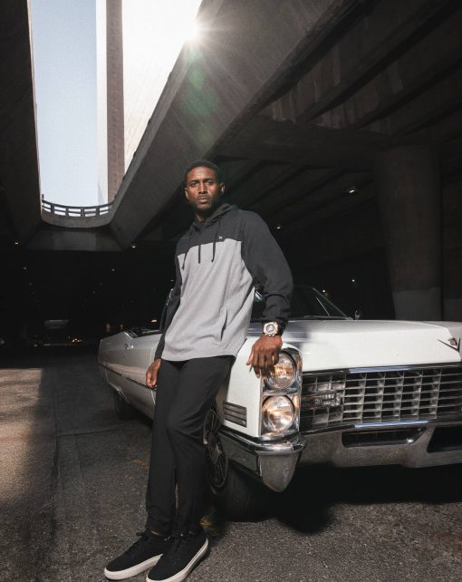 Built for movement. The COIN TOSS TECH HOODIE was directly inspired by Reggie Bush’s style and delivers a sharp, athletic look with custom drawcords, a scoop bottom hem, and half-elastic cuffs for a dynamic fit. The lightweight 4-way stretch fabric keeps things breathable, comfortable, and ready for whatever’s next.