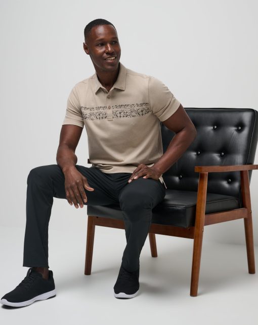 With the DESERTED COVE polo, vacation starts now. Printed with a chest stripe of sun-faded florals, the only thing that’s missing is you… and maybe a mai tai (or two).
