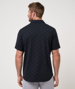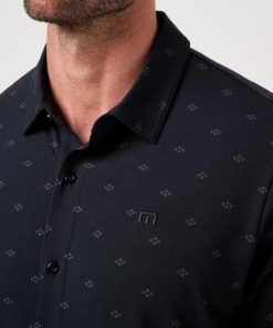 - TravisMathew Block Logo Embroidery On Lower Inside Placket
