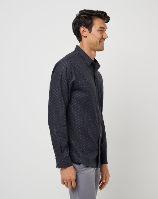 For the days that start with meetings and end with margs. TECHWOVEN TIDBITS is built from our best-selling TechWoven fabric—lightweight, breathable, and structured enough to pass as “put together.” A subtle geo print adds some interest without breaking dress code. Wear it tucked or loose, solo or layered—it plays nice with all of it.