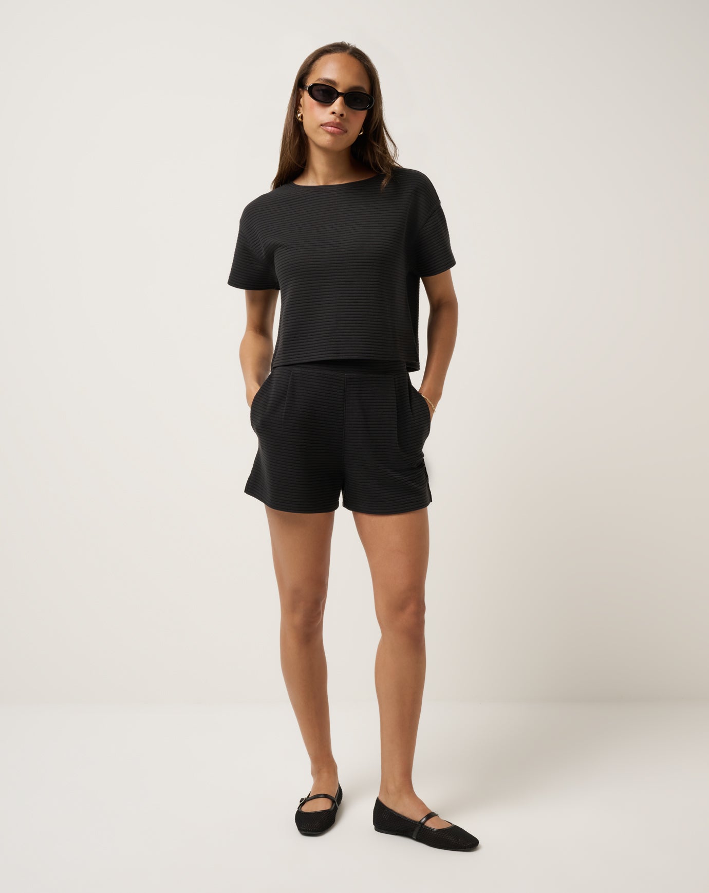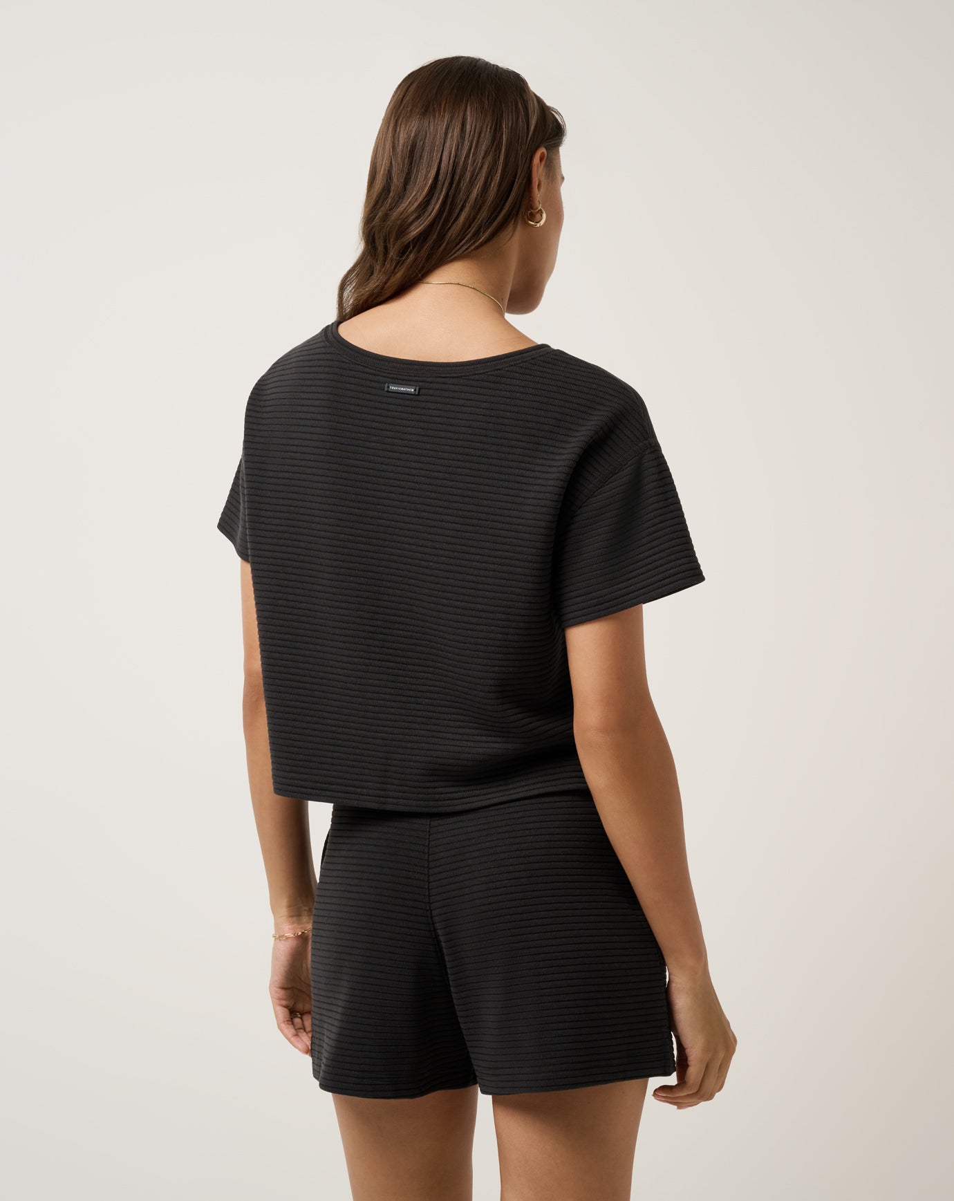 At first glance the CHARTER CRUISE top may look simple, but let us assure you—it’s anything but. Shall we take a closer look? The unique ribbed fabric is the secret sauce here because it delivers an absolutely gorgeous texture that’s super lightweight, ultra-comfortable, and holds its shape all day long. Which means you get to wear the heck out of this wide boatneck collar, drop shoulder, and playful boxy silhouette.Pro Tip: Pair the Charter Cruise with the YACHT ME short for a head-turning set. Or, match it with jeans for a go-with-the-flow style.