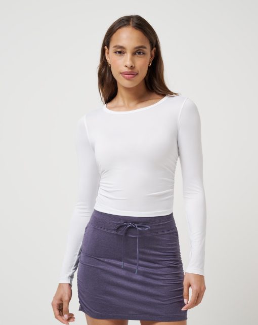 Meet the long sleeve that moves with you. The SKYLOFT LIGHT SKYLINE TOP is made with our all-new Skyloft Light fabric—a buttery soft, lightweight stretch material designed to keep you cool, confident, and comfortable all day long. With built-in UPF 40+ sun protection, it’s made for wherever the day takes you. Style with our Skyline Jersey Tie Skort for a complete active set.