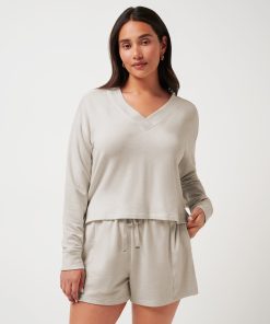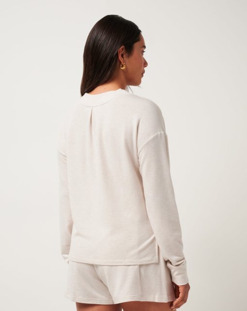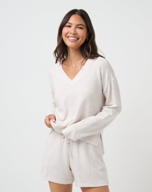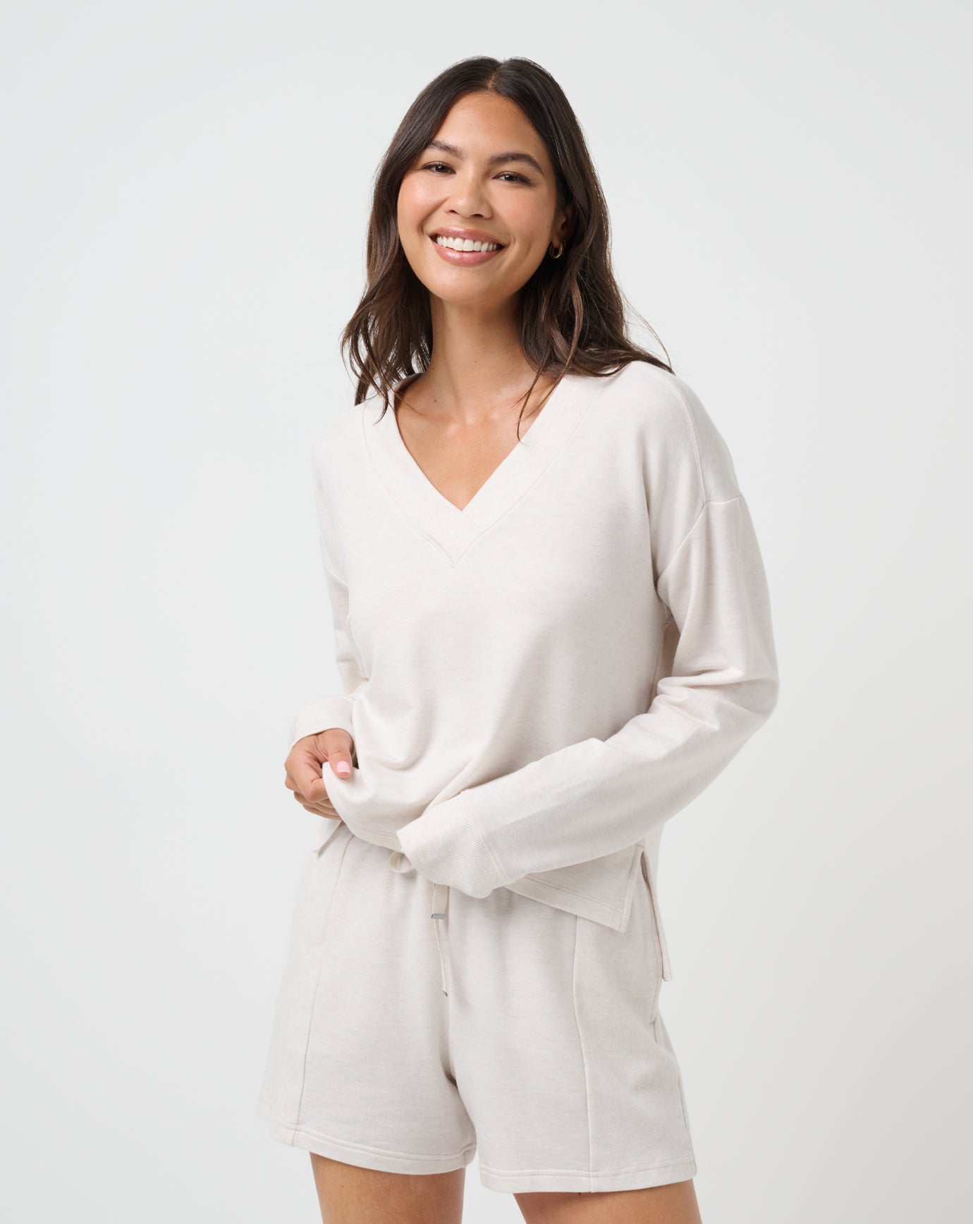 Meet the CLOUD TERRY PULLOVER: the V-neck pullover you’ll want to live in. Soft enough to rival your coziest blanket but styled with ribbed details and a stepped hem that makes it look polished enough for coffee dates or casual Fridays. Wear it solo or with the matching Cloud Terry Rib Short for peak lounge-meets-luxe vibes.